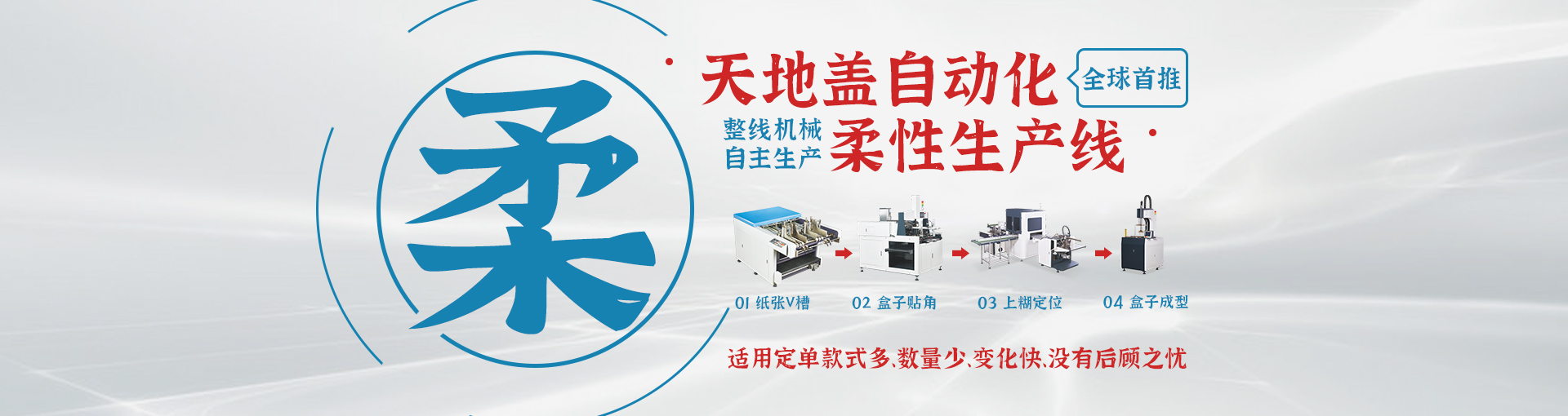 性能特點:適合各種天地蓋的自動生產線;故障診斷功能;自動吸送面紙和送灰板功能;高精度凸輪飛達送紙;整機采用松下伺服控制系統;視覺定位系統及機器人抓?。ǘㄎ徽`差小于0.1mm);采用雅馬哈機器人;采用全新循環溫控上膠系統;采用精準四角抱盒機械手;采用精準滑臺折耳,折耳長度可以調。